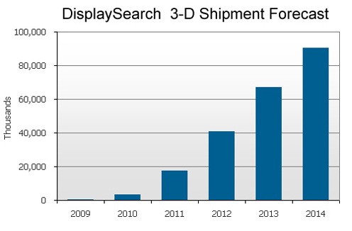 Proyección de ventas de televisores 3D según Displaysearch