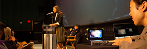 Reducción en los equipos de hardware, en el tiempo de configuración y en la complejidad de conexión. Éstas son las principales bazas del VR-5 de Roland, un equipo que va más allá de un mezclador de audio/vídeo y cuya demostración en cuanto a producción, grabación y transmisión en web streaming se ha podido ver en el Showroom que Roland System Group tiene en la sede de Mac Digital. Además, como ha quedado patente, es una solución fácil de manejar y transportar a cuaquier evento.