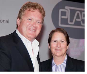 Matthew Griffiths, CEO de PLASA y Lori Rubinstein, directora ejecutiva de ESTA
