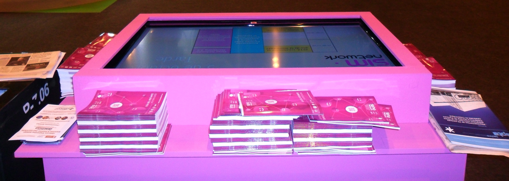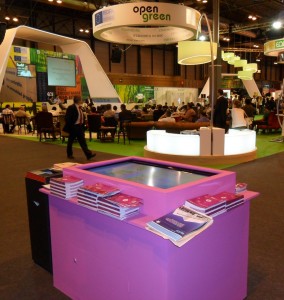 Los visitantes accedían a través de estas pantallas a la información sobre las conferencia y entregas de premios que se realizaron en los distintos foros del certamen y también ayudaba a ubicarles dentro del pabellón. El sistema permitía realizar cualquier cambio en el programa en tiempo real.