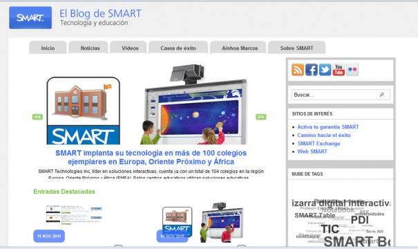 Smart Technologies ha puesto en marcha un blog para todos aquellos centros educativos y profesorado que esté utilizando sus pizarras digitales interactivas en las aulas. En dicho blog se aportan recursos interesantes para la creación de actividades por parte del profesorado, noticias, vídeos, formación, tutoriales, experiencias de éxito en la utilización de la PDI y otra serie de recursos de interés.