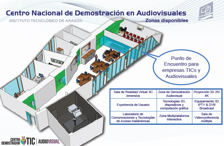 El Instituto Tecnológico de Aragón y la entidad pública empresarial Red.es han firmado un convenio para la creación en el Parque Tecnológico de Walqa, en Huesca (Aragón) de un Centro Público Demostrador de Tecnologías de la Información y las Comunicaciones para el Sector Audiovisual. En este espacio, que será gestionado por el Centro Nacional de Demostración en Audiovisuales, las empresas TIC interesadas podrán mostrar a las empresas posibles usuarias de tecnología, de forma práctica, productos y servicios tecnológicos dirigidos a mejorar su productividad y competitividad. Adicionalmente, servirá de punto de encuentro entre la innovación y las necesidades de las empresas.