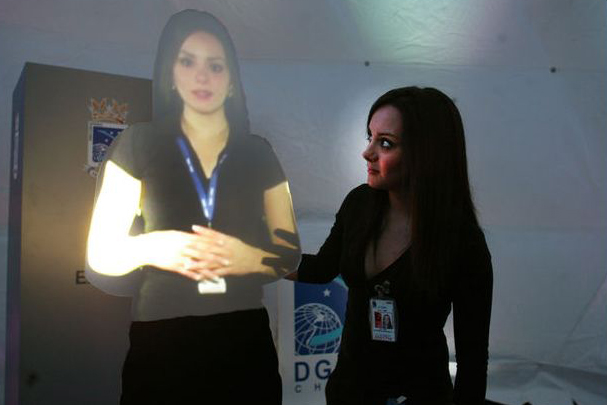 El sistema se basa en la telepresencia, es decir, que la imagen de una persona se proyecta en tamaño real a través de un acrílico recortado en forma de silueta, un proyector de 6.000 ANSI lúmenes y programas computacionales que logran mezclar las imágenes, con el sonido y el habla de la persona proyectada.