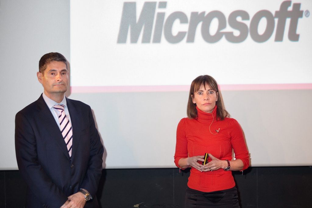 María Garaña, presidenta de Microsoft Ibérica, y José Azcona, director de la división TI de Samsung Iberia y responsable del negocio con empresas, han presentado el Samsung SUR40 para Microsoft Surface, un dispositivo que ofrece una experiencia mejorada y renovada en la forma de colaborar, compartir e interactuar con una interfaz de 360 grados. Se trata de un dispositivo pensado para ofrecer un variado abanico de prestaciones interactivas que permíten la promoción de contenidos y marca de manera innovadora y moderna.