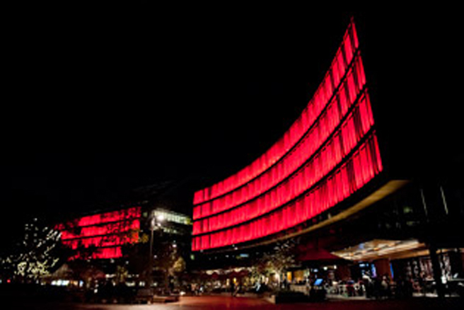 Con 557 paneles de LED y una extensión de 150 metros sobre las fachadas de dos edificios, el resultado es que Luminous lleva la luz y la alegría a la comunidad, reuniendo a la gente al servicio de la creación de la luz y el arte para que otros puedan disfrutar. El ‘lienzo’, obra del renombrado diseñador de iluminación Bruce Ramus y fabricado por los especialistas en iluminación arquitectónica, Klik Systems, utiliza energía renovable que es generada por los paneles solares colocados en el techo de los edificios.