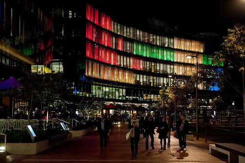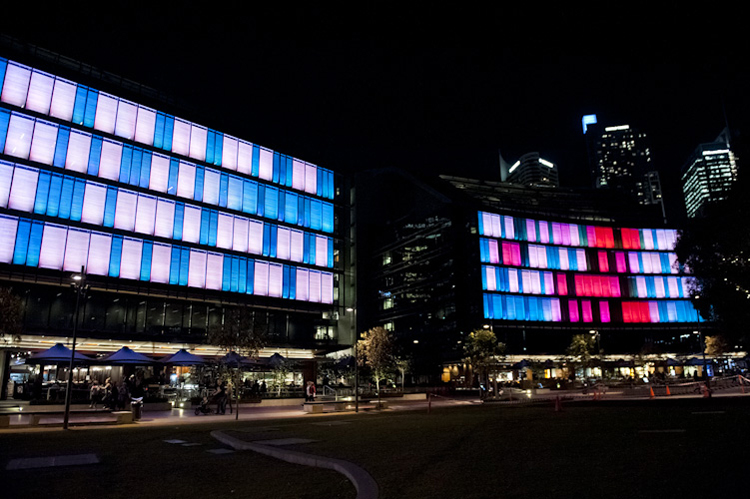 El Darling Quarter de Harbour Street en Sidney (Australia) es el escenario de ‘Luminous’, la instalación de iluminación digital interactiva más grande del mundo, que representa un fomento de lo que significa diversión y unión en la comunidad gracias a la tecnología interactiva de hoy en día. A simple vista parecen simples recuadros iluminando un edificio, pero lo interesante es el proyecto que se esconde detrás de esta vista, el juego de la iluminación y los patrones de los LEDs. A través de una aplicación móvil o bien desde la página web del proyecto, el diseño de iluminación de esta instalación puede estar en las manos de cualquier persona desde cualquier rincón del mundo.