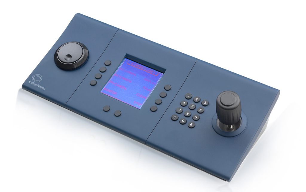 Gracias a un diseño moderno y eficaz que incorpora una pantalla LCD, el teclado de IndigoVision garantiza control total y supervisión interactiva. Por medio de una configuración de comandos sencilla y una pantalla interactiva, la selección de cámaras es tarea fácil y ofrece respuesta inmediata y elección del panel de visualización, mientras que el joystick garantiza precisión para el control de las cámaras PTZ (barrido, inclinación y acercamiento).