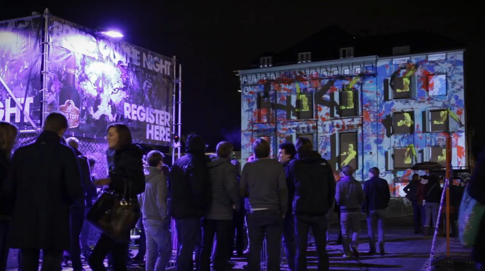 La marca de vodka Eristoff ha llevado a cabo en la ciudad de Gante (Bélgica) una original iniciativa en la que se acerca a las personas para ofrecerles una experiencia de marca haciéndoles pasar un buen rato. Para ello, la agencia de publicidad Design is Dead ha creado un entorno de juego único en el lateral de un edificio de la Plaza de San Pedro combinando un projection mapping 3D en vivo con un videojuego controlado por iPad para captar la atención de los jóvenes fiesteros y ofrecerles la oportunidad de ganar unas entradas VIP para el festival I Love Techno de Bélgica.