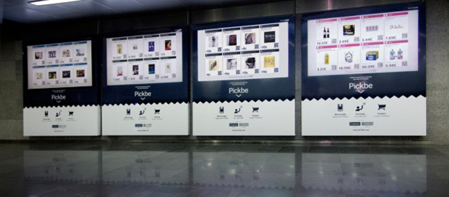 Dos de las estaciones de intercambio del metro de Barcelona con mayor volumen de pasajeros, Diagonal y La Sagrera, han abierto las primeras tiendas virtuales para comprar en línea todo tipo de productos y servicios mediante el uso del teléfono móvil. Se trata de cuatro grandes pantallas murales con códigos QR en cada una de las 32 ofertas que se muestran de forma simultánea y que se van renovando al cabo de unos pocos minutos. Estos códigos son captados por una aplicación disponible para iPhone y Android. El cliente no tiene que decidirse en ese momento. Tras coger el código, puede meditar y cerrar la compra, que recibirá en su casa, mientras va en el metro o cuando llega al destino laboral o residencial.