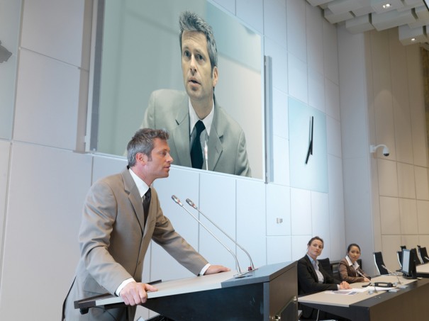 El control automático de cámaras da una dimensión visual a la reunión que no sólo ayuda mantener la atención sobre el tema en discusión sino que al mismo tiempo muestra la imagen de quién está hablando. Una cámara PTZ enfoca automáticamente al orador y muestra su imagen más su nombre en las pantallas de los monitores y proyectores, por ejemplo, en la sala de reuniones principal, vestíbulo, cabinas de intérpretes o salas para grupos. La cámara se activa automáticamente cuando se pulsa el botón de micrófono de la unidad de delegado del sistema de conferencias.