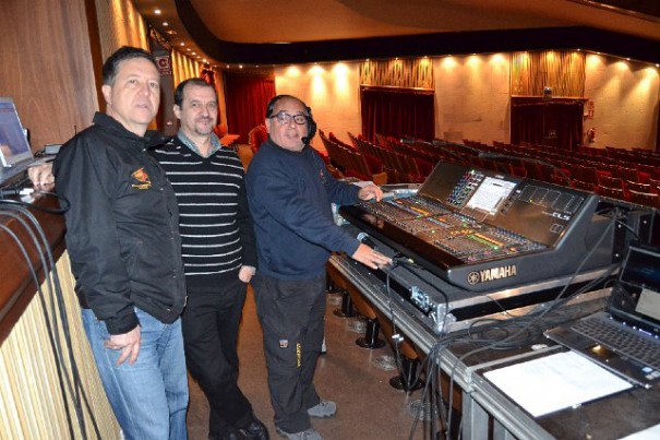 De izquierda a derecha, Jose Javier ‘Boby’ García (Pronorte Sonido), Jacinto López (Yamaha), y Basiliso José Borrego (ingeniero de sonido FOH).