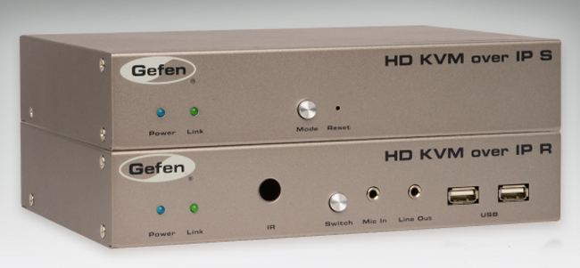 Las señales de streaming KVM (teclado, vídeo, ratón) a través de una infraestructura Gigabit Ethernet es la solución más reciente que Gefen ofrece para mejorar la accesibilidad en cualquier parte del edificio. Tres nuevas soluciones: los extensores KVM HDMI sobre IP, KVM DVI sobre IP y KVM VGA sobre IP ofrecen una manera efectiva de extender los periféricos a través de cable CAT-5 para acceder a video por ordenador, audio y control desde cualquier sitio dentro de la LAN. La resolución de vídeo de alta definición de hasta 1080p es soportada usando el mismo cable CAT-5 con el beneficio adicional de enviar dos canales de audio, entrada / salida de micrófono, USB, RS-232 e IR.