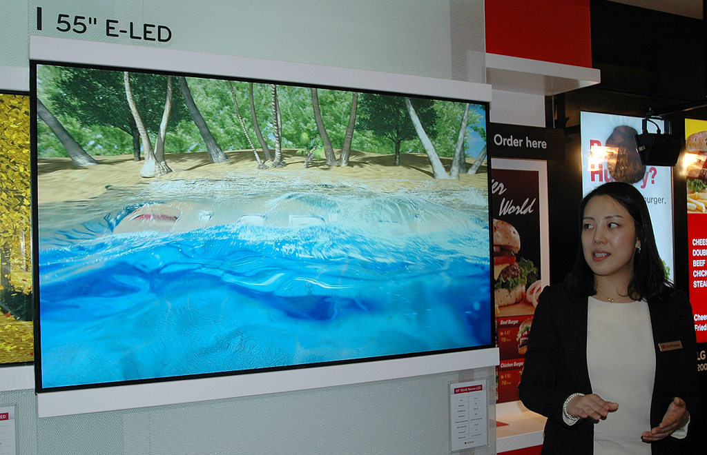 Además, LG Display también está mostrando en ISE por primera vez en Europa sus displays públicos Edge-LED (E-LED) de 55 pulgadas, destacando la innovación de su diseño delgado y estrecho. Con apenas 9,9 mm de bisel, el nuevo display de 55 pulgadas ofrece las mismas realistas imágenes sin fisuras como los modelos de 42 y 47 pulgadas. Al incorporar retroiluminación LED y tecnología de Local Dimming para reducir el consumo de energía, la pantalla puede reproducir anuncios de video durante aproximadamente 50.000 horas.