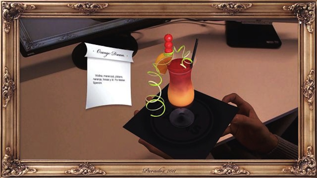 La aplicación creada por Parados D&D utiliza una librería de reconocimiento óptico propia muy robusta, preparada para llevar la tecnología de realidad aumentada a eventos, que además permite interactuar con la distancia del marcador a cámara, de forma que cuando se acercaba lo suficiente aparecía un listado de los ingredientes del cóctel. Como señalan los desarrolladores de esta compañía, “una carta de realidad aumentada puede ayudar a los clientes a tomar elecciones sobre qué pedir ante un listado de posibilidades de una manera más visual y atrayente. La capacidad de crear modelos realistas permite apreciaciones mucho más fidedignas de las que puede otorgar una fotografía o una descripción, por tanto, si un restaurante está planteando dar un salto tecnológico, ésta podría ser una buena opción”.