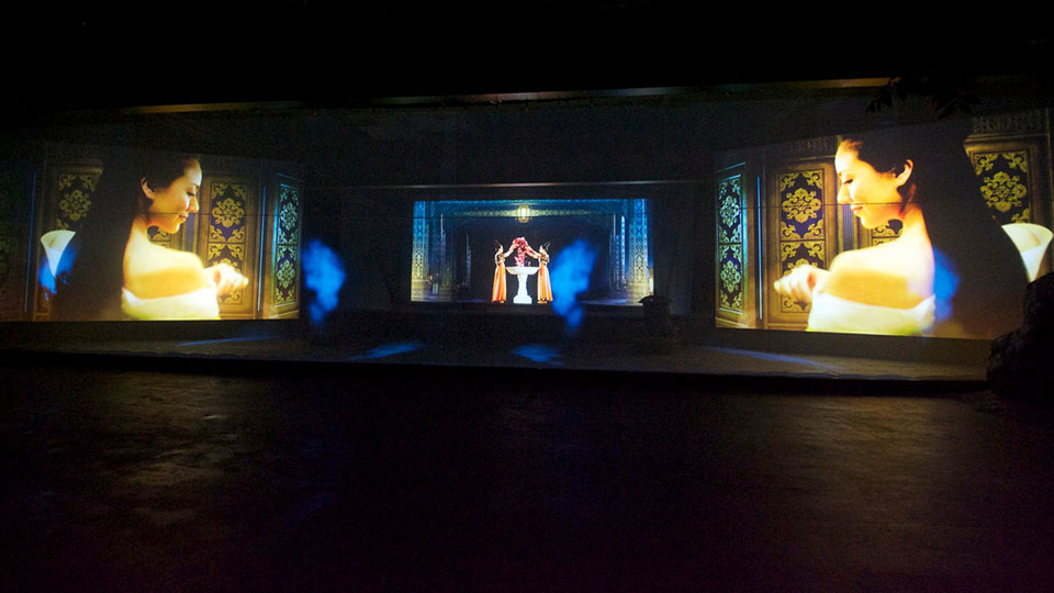Las pantallas están sincronizadas con actores en vivo, luz y música para ofrecer al visitante una experiencia única en un recinto construido específicamente para el proyecto, adyacente al histórico Hua Qing Palace.