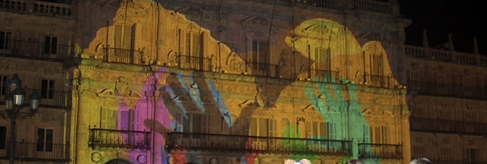 La fachada del ayuntamiento de Salamanca, ubicado en su playa mayor, ha servido de pantalla para el vídeo mapping realizado por Paramotion Films con motivo de la celebración del Festival de Artes Escénicas de Castilla y León (Fácyl).