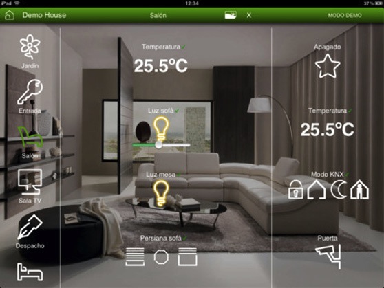 Todos los valores medidos y almacenados se pueden visualizar en un sistema BMS de KNX o con otros sistemas de visualización, como el control remoto See-Home, una aplicación KNX que permite controlar en tiempo real la iluminación, la climatización o los sistemas de seguridad desde un smartphone o tableta (Android o iOS).