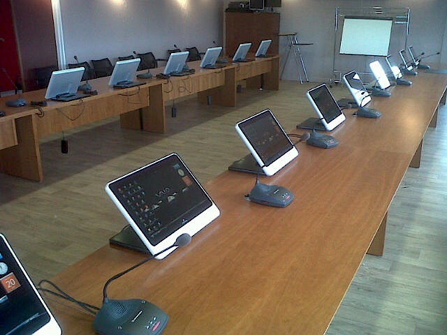 La forma de la sala de reuniones de CPAM hacía necesario el uso de monitores profesionales que fueran lo menos intrusivos posible para facilitar el contacto visual, la colaboración y el co-working entre los participantes.