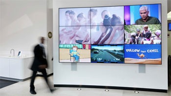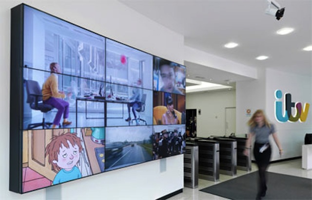 El videowall muestra a los visitantes imágenes corporativas de cada uno de los canales de ITV, de los espectáculos y eventos que produce la cadena, para entretener a los visitantes mientras esperan a ser recibidos.