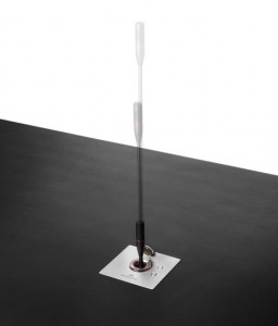 La marca Arthur Holm ha desarrollado DynamicTalk, un sistema universal motorizado para micrófonos de cuello de cisne, que permite alojar los sistemas de audioconferencia en el interior de la superficie de trabajo.