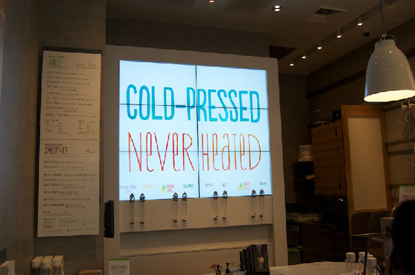 Starbucks da a conocer su nueva negocio de zumos, Evolution Fresh, con una original idea de señalización digital.