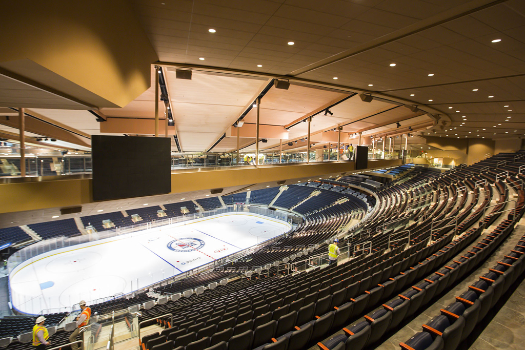 Esta pantalla multimedia consta de 24 pantallas LED curvas de alta definición individuales, que reflejan el diseño circular del estadio y proporciona la máxima visibilidad desde cualquier lugar del pabellón.
