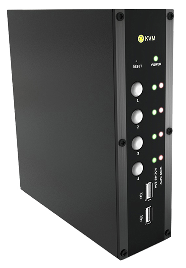 Por su parte, el C4-KVM Switch es un sistema de control centralizado que permite gestionar una red de múltiples sistemas a través de un solo teclado, monitor y ratón. Este switch también permite compartir otros periféricos como dispositivos de almacenamiento masivo.