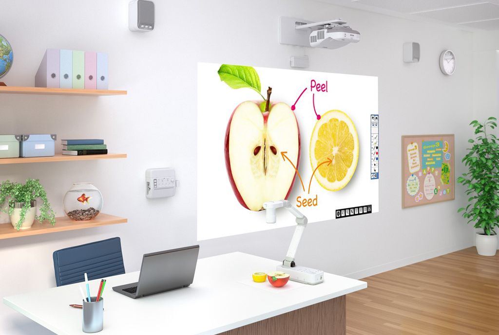 Este proyector, que forma parte de la serie EB-5 de Epson, permite utilizar hasta seis puntos táctiles o sus dos lápices interactivos, para anotar directamente sobre la imagen proyectada, lo que facilita escribir apuntes, dibujar diagramas o ilustrar vídeos.