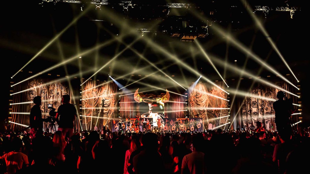 Trabajar con un escenario en constante movimiento y con proyección mapeada sobre las piezas escénicas, como apunta este diseñador, le dio la oportunidad de incluir todos los elementos visuales, haciendo recortes con los haces para que las proyecciones fueran vistas sin ocultar a la artista. En cuanto a los bailarines, su opción fue trabajar con mucho color y buenos niveles de luz en todo momento para las cámaras, con una temperatura base de 5600 K.