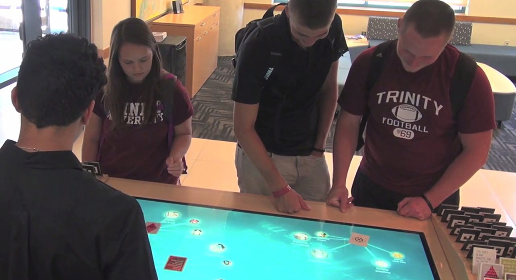 Una mesa interactiva MultiTaction de MultiTouch ha sido instalada en la Oficina de Admisiones de la Universidad Trinity de San Antonio para mostrar a los futuros estudiantes las diferentes opciones educativas que tienen para elegir y cuál es la que mejor se adapta a sus aptitudes.