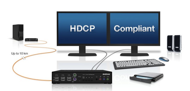 Protección de contenido digital de ancho de banda alto (HDCP) y el aumento de la distancia de extensión máxima a 10 Km. con un solo cable de fibra óptica dúplex LC-LC son las principales innovaciones que Matrox Graphics ha incorporado a sus extensores KVM Avio F125.