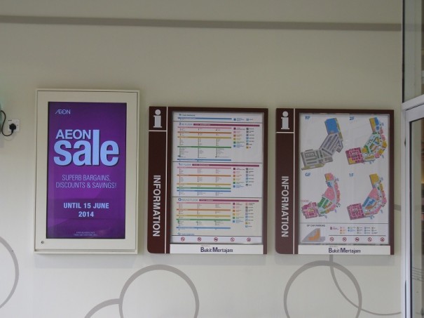El equipo de planificación de Aeon en Malasia ha finalizado un proyecto de cartelería digital en sus tiendas con el objetivo de mejorar la forma de presentar la información en sus establecimientos, como horas de apertura, promociones, eventos, etc.que también se utiliza para su comunicación interna como canal para motivar a sus empleados e incrementar el ROI y los beneficios.