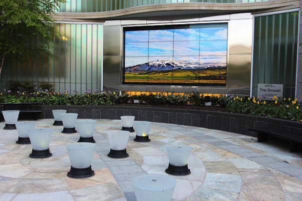 La compañía de biotecnología United Therapeutics, especializada en medicamentos para pacientes con enfermedades crónicas, ha creado un espacio audiovisual como punto de encuentro y relajación al que se puede acceder libremente, protagonizado por una pantalla de gran formato de Planar, denominada Biowall, en la que se muestran imágenes de naturaleza y ciencia.
