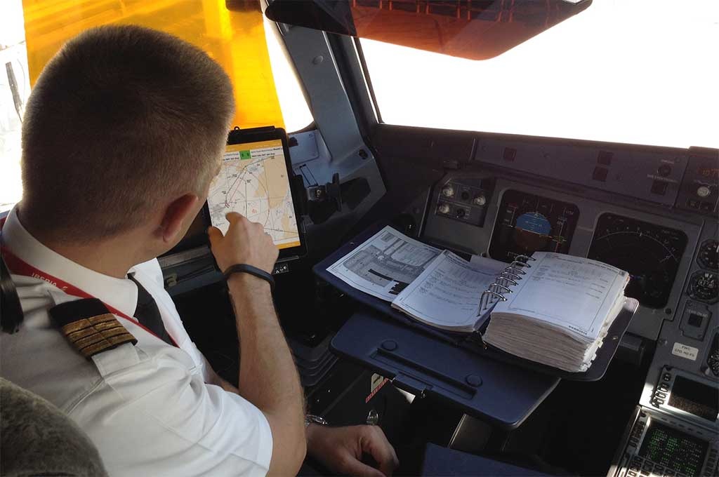 Los pilotos de Iberia sustituyen su cartera de vuelo tradicional por un avanzado sistema electrónico