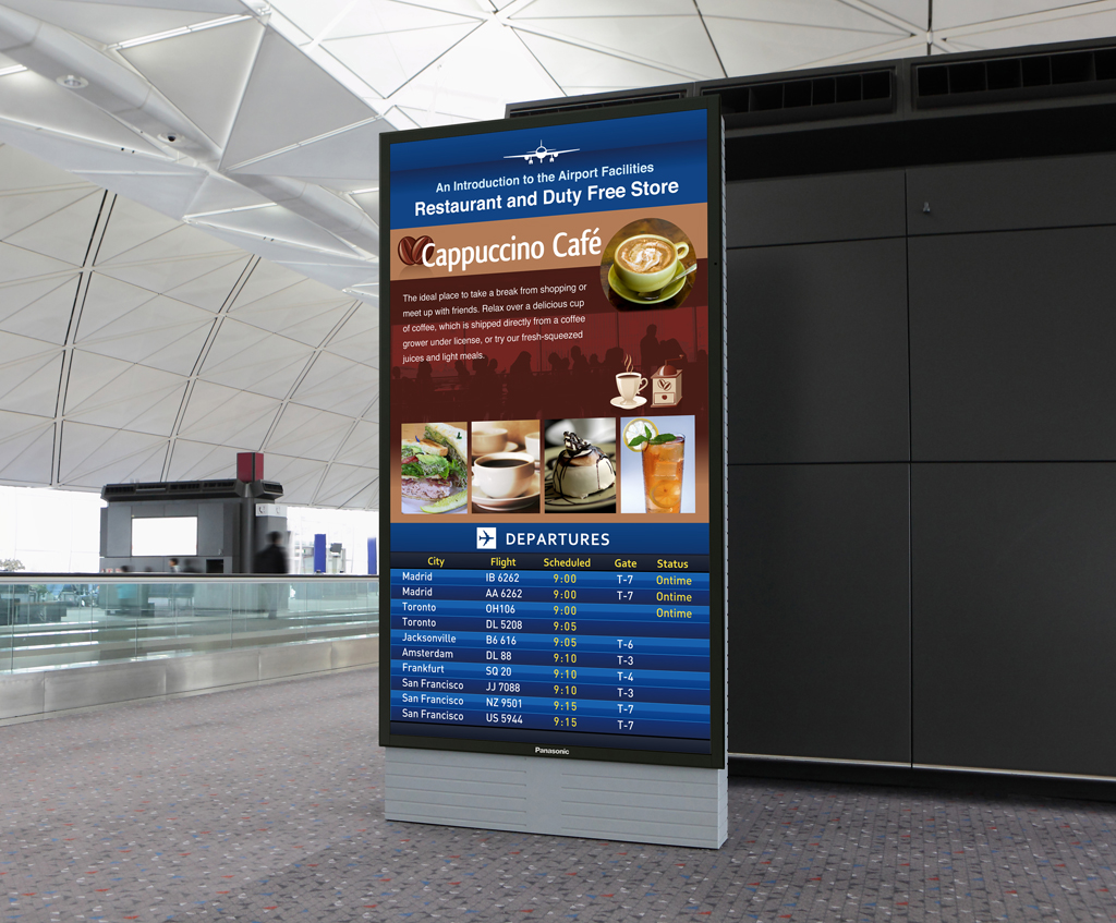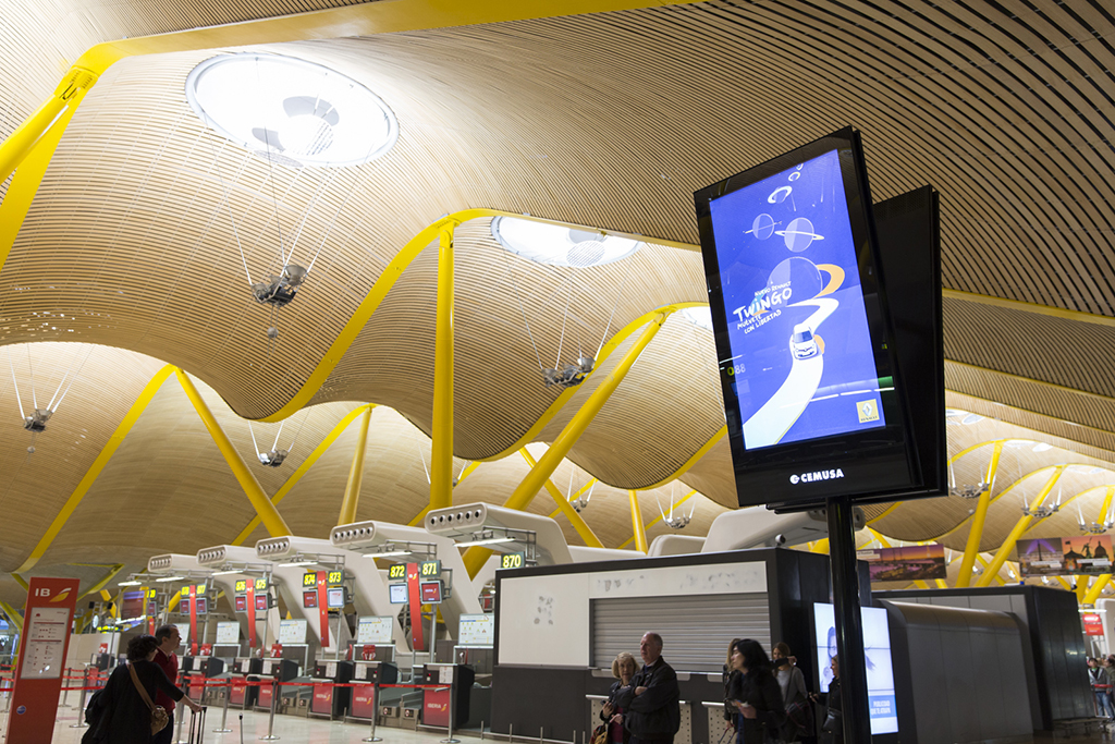 De esta forma, durante este año se instalarán en los principales aeropuertos españoles un total de 170 pantallas de 70 pulgadas Panasonic TH-70LF50 como soporte de publicidad y comunicación. Unas pantallas LCD que garantizan su funcionamiento bajo un uso ininterrumpido 24×7, sin fallos y con una alta durabilidad, así como una gran calidad de imagen y alto brillo.