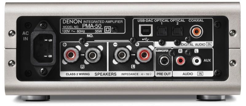 El sistema añade también una entrada USB-B con la que es posible conectar un PC o Mac y escuchar los ficheros de audio contenidos en el ordenador en alta resolución. En concreto, Denon PMA-50 es capaz de reproducir archivos PCM de alta resolución de hasta 24 bits/192 KHz, así como archivos DSD de alta resolución de 2,8 MHz y 5,6 MHz.