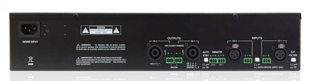 El modelo GPA2-800 dispone de dos entradas mono balanceadas (terminales XLR y Euroblock), conectores de salida Euroblock y Speakon y dos puertos Remote (0-10VDC) para control de volumen, compatible con paneles WPm, y permite trabajar en puente.