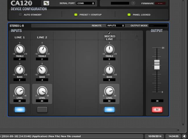 Incorpora control de tonos de 2 vías (Bass, Treble) independiente, para los buses Mic y Line, salida auxiliar para enlace con dispositivos externos (amplificadores adicionales, mezcladores…), control digital local tipo encoder y remoto IR.