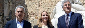Juan Carlos Prieto Vielba, dtor general Fundación Santa Maria la Real del Patrimonio Histórico; Diana Caminero Gerente M2M Dirección Telefónica Digital España y José Luis Rivas, alcalde del Ayuntamiento de Ávila (izd. a dcha.) 300×100