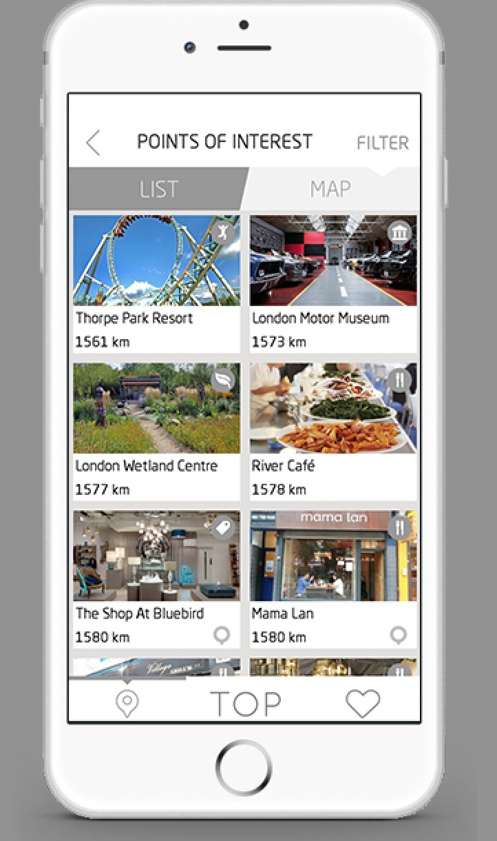 De diseño personalizado con la imagen corporativa del establecimiento y los servicios que ofrezcan, esta app genera una guía de rutas desde aeropuertos, estaciones de tren; geo-referencias con información útil (cajeros automáticos, oficinas de correos, policía, etc.), así como rutas rutas a atracciones, vistas panorámicas, restaurantes, tiendas,… que parten del establecimiento, con más de 5.000 puntos de interés en 150 ciudades.