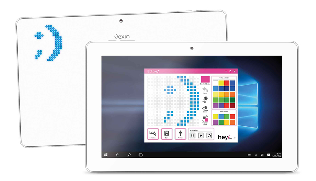 Hey!tech es un nuevo modelo comunicativo que combina un software de uso intuitivo y un panel de Leds en la parte trasera del dispositivo. La carcasa pasa a transformarse en una ventana interactiva donde expresar todo lo que se quiera, como y cuando se desee.