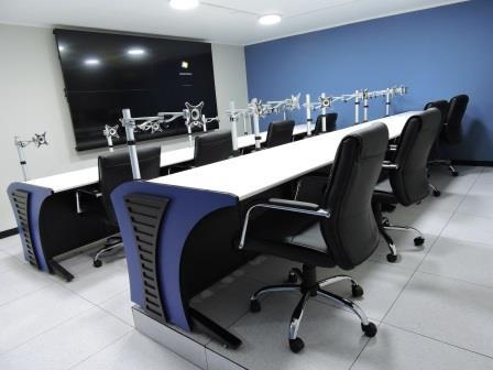 Procont Barco Centro Migracion PeruComo parte del proyecto se ha instalado un videowall  configuración 2×2, con pantallas de 55 pulgadas de la firma LG, con controlador de Barco, que ofrece un uso continuado de alto rendimiento 24×7, así como un par de consolas ergonómicas de plataforma fija con brazos articulados para los operadores, control de acceso, etc. fabricadas por Proyectos y Control SAC.