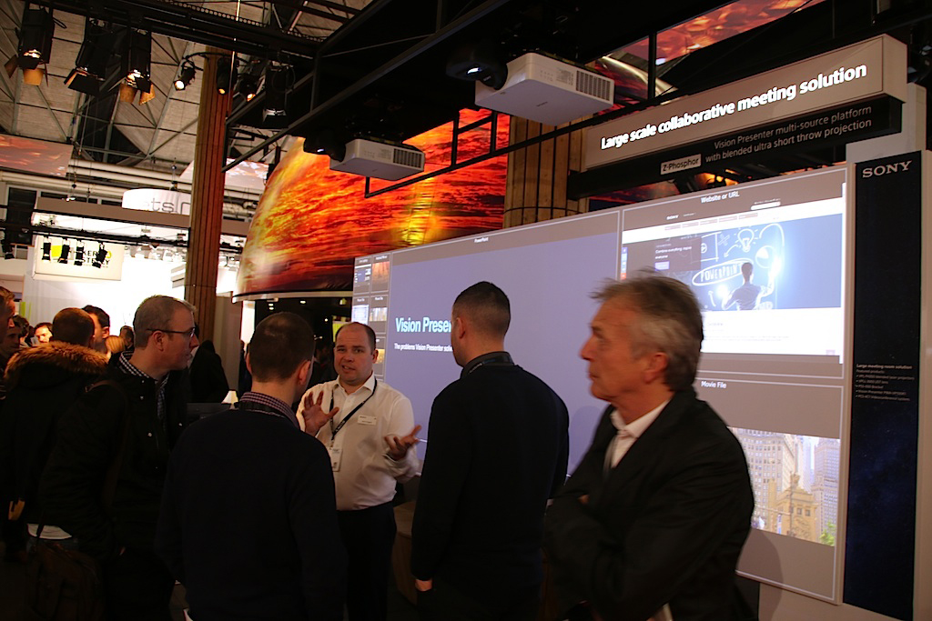 La solución colaborativa para salas de reuniones de Sony, Vision Presenter, también se está mostrando en ISE 2016 con interacción con pantalla táctil.