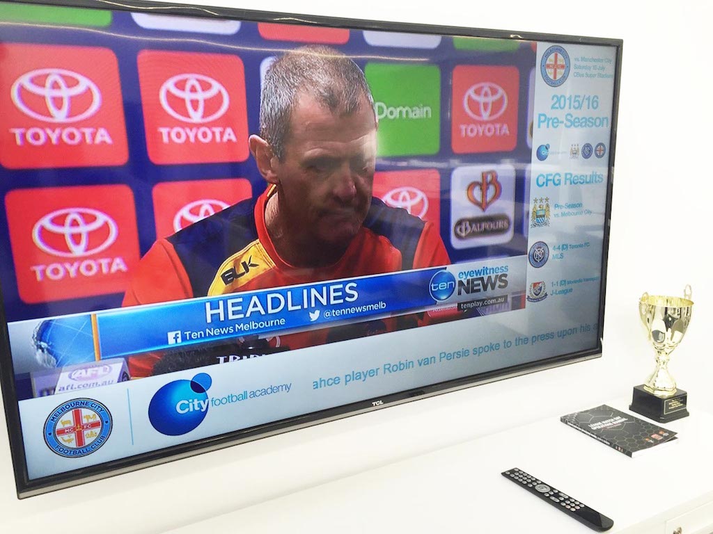 La sede regional de City Football Group en Melbourne optó así por desplegar la plataforma de digital signage e IPTV del especialista Triple Play a través de su red de área local (LAN), controlada de manera centralizada, que además también puede actualizarse a través de la red global de la organización (WAN) en Reino Unido con el fin de tener una efectiva comunicación interna.
