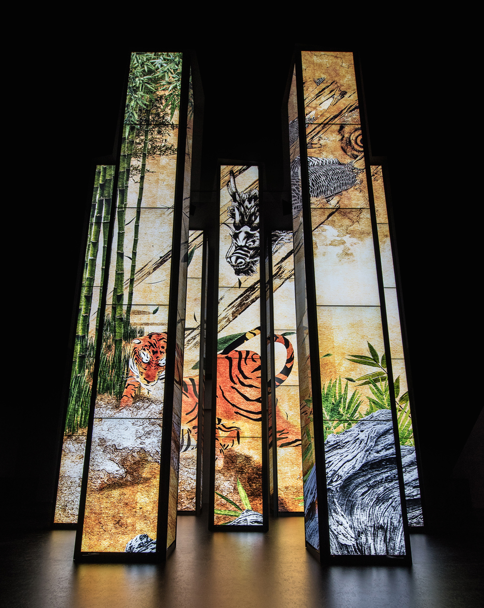 En la ceremonia de apertura de esta instalación, el productor Shuichi Furumi y colaborador en su diseño, explicó que “hemos creado un espacio tridimensional usando siete columnas y 140 monitores: las ‘siete dimensiones’, en las que invitamos a pensar en él como un dispositivo de invención espacial que rompe el espacio; construye un nuevo espacio y crea tiempo en el espacio. El visitante debe tomarse su tiempo para caminar alrededor de él, adentrarse en las columnas y sentir el espacio de la cultura japonesa para sumergirse en un entorno desconocido e inexplorado”.