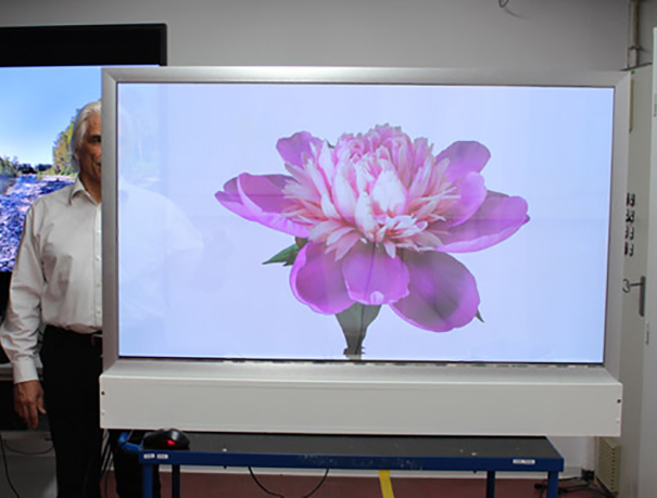 Esta pantalla de 55 pulgadas de diagonal crea una única multicapa de impresión donde las imágenes finas y en movimiento se superponen a los objetos reales, lo que da lugar a un formato nuevo y atractivo para realizar presentaciones.