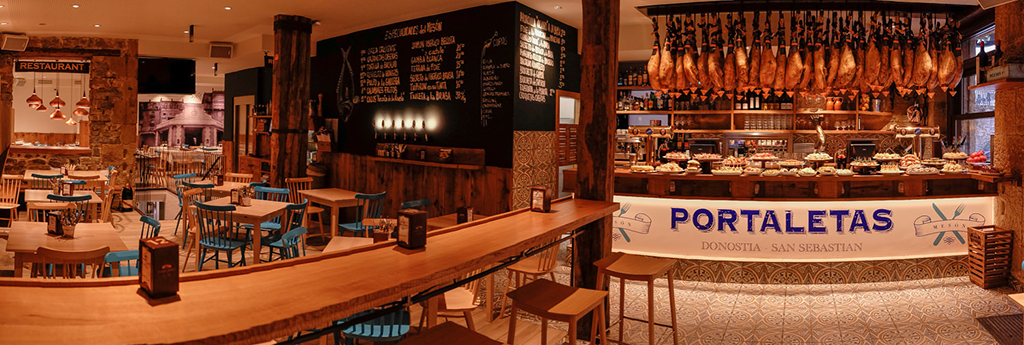 El Mesón Portaletas se encuentra ubicado en el acceso al casco antiguo de San Sebastian desde el puerto, a través de una construcción de arcos llamado Portaletas, origen del nombre del local. Situado en la antigua muralla medieval, esta forma parte del establecimiento. Dispone de dos comedores con capacidad para más de cien comensales.