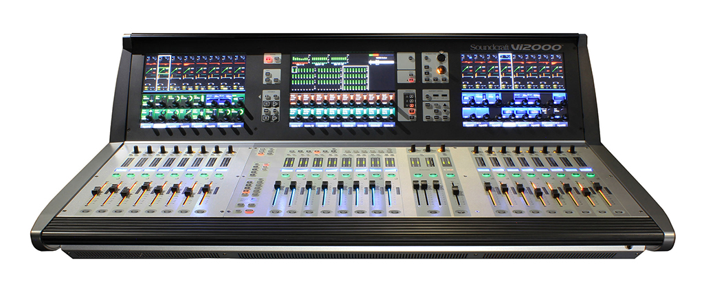 El mezclador digital Vi2000 (en la imagen inferior) cuenta con un formato compacto y rentable y ofrece una óptima potencia de mezcla a los mercados de instalación, touring y corporativo. Combina los conceptos exclusivos de superficie de control basados en la interfaz Vistonics (incluidos también en los modelos Vi3000, Vi5000 y Vi7000) con Soundcraft SpiderCore, un DSP integrado en la propia superficie de control y núcleo de entradas y salidas.