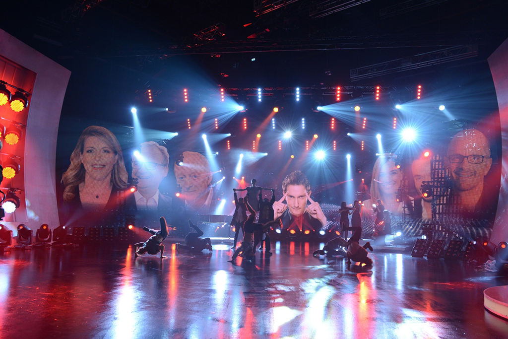 Las 12 unidades del efecto único ACL 360 Roller se han utilizado para dotar a diferentes actuaciones musicales en el programa de un aspecto diferente y novedoso. “El ACL 360 Roller me proporciona un efecto que recuerda a la música disco y las iluminaciones de aquella época. Este programa se graba en un estudio de televisión muy moderno y con numerosas pantallas Led de vídeo y para una actuación musical de un grupo de break-dance buscaba un elemento que recordase al tipo de efectos que se vería en un vídeo de los raperos Run DMC en los años 80”, comenta Thomas.