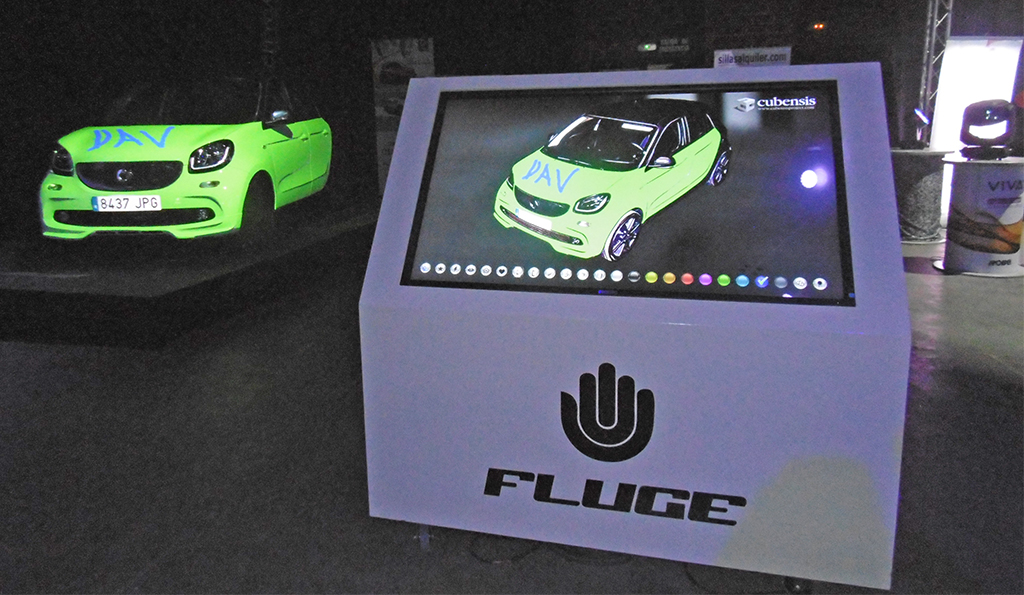 La experiencia más llamativa era el mappeado realizado sobre un coche que era controlado a través de una pantalla táctil desde donde se podía cambiar el aspecto del vehículo.